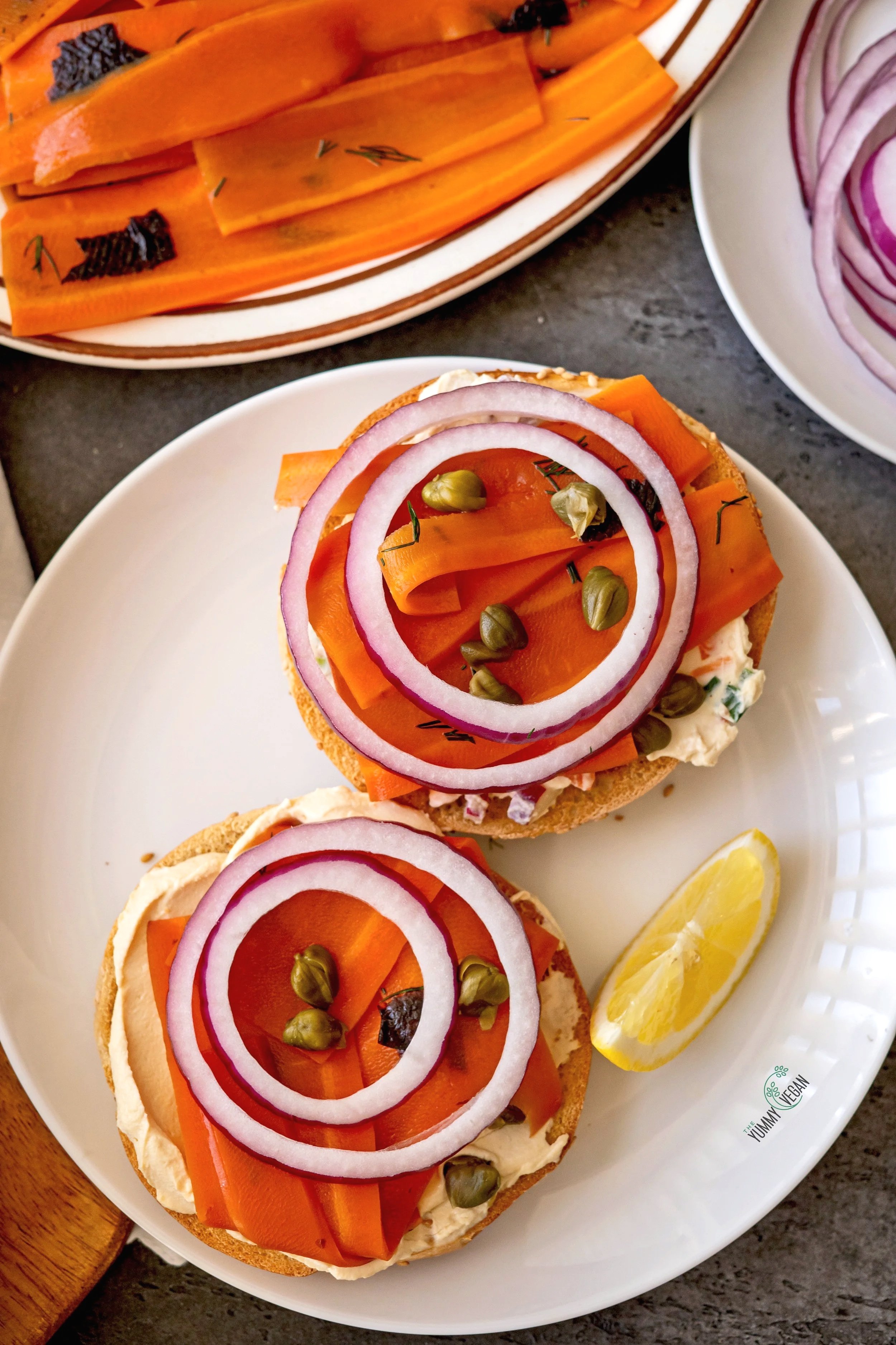 What’s more iconic than a fully loaded bagel with lox and cream cheese? In my opinion, it’s a brunch essential! As someone who’s vegan/plant-based, finding a good substitute for lox isn’t easy. Carrot lox has been around for a while, but it’s not always done right. This recipe delivers that nostalgic, smoky, salty flavor you crave that pairs perfectly with a bagel and cream cheese. The secret? A flavorful marinade and a little patience. The longer the carrots sit, the better the texture and depth of flavor. Be sure to taste and adjust the marinade, whether you want it smokier, saltier, or even slightly sweeter.