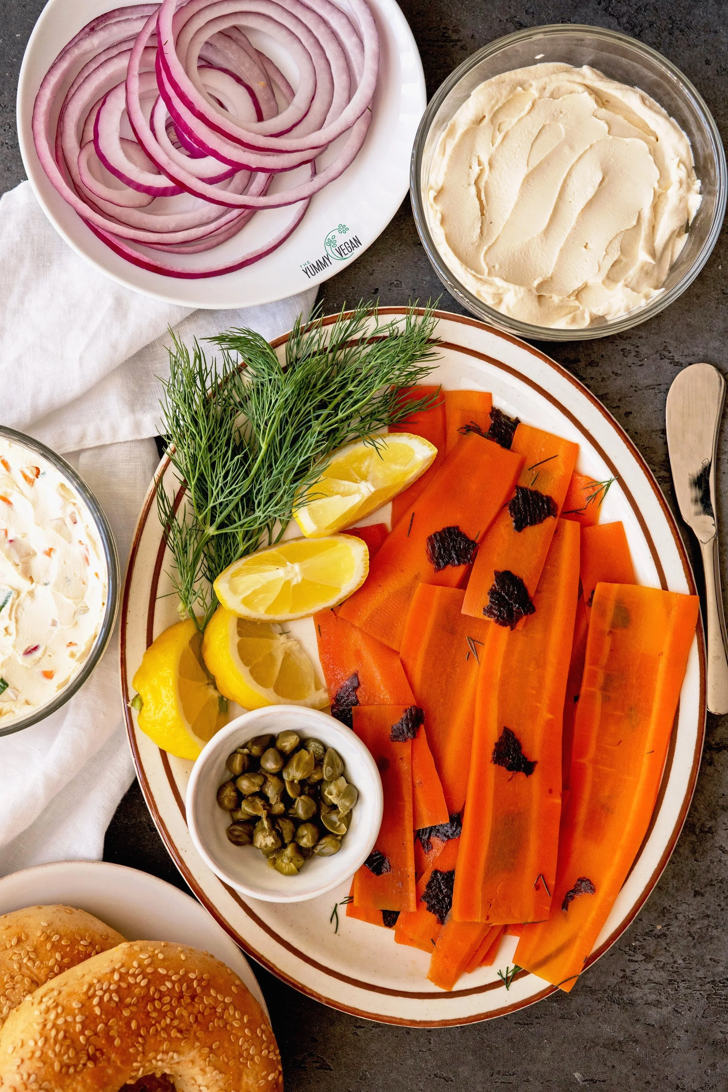 Carrots - try to find the widest carrots available. That way the slices will more closely resemble the width of lox.