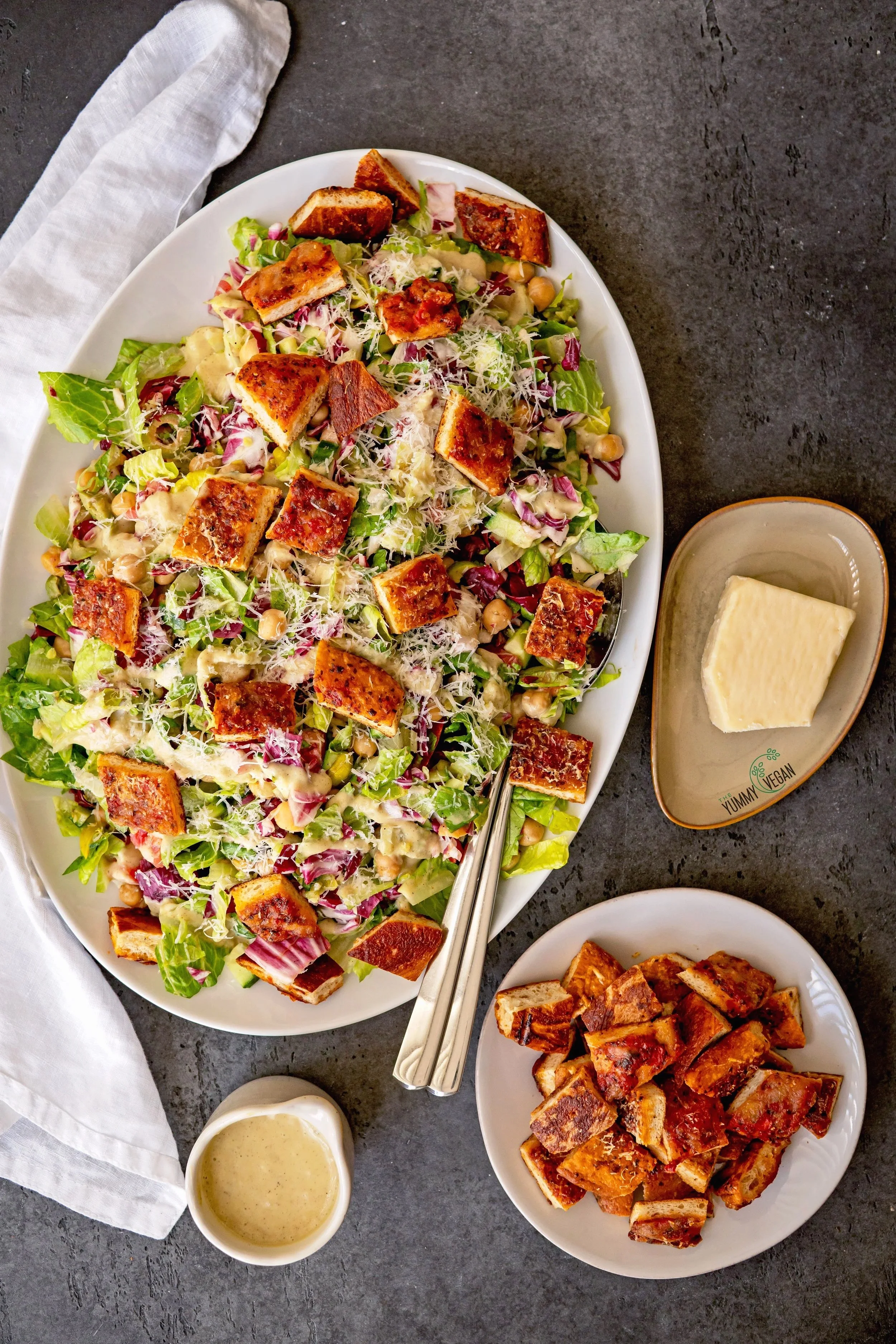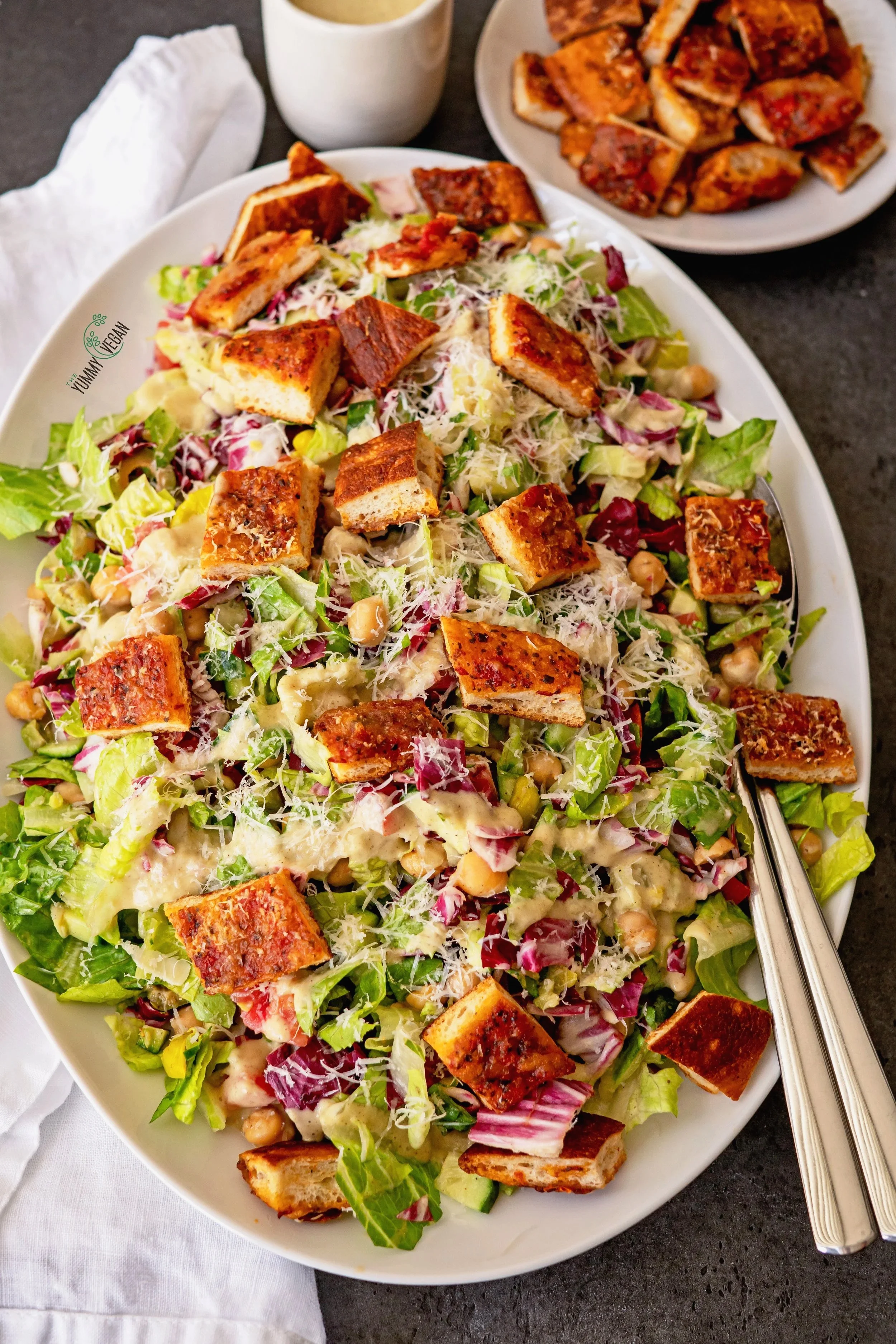 5.Serve the salad topped with a generous amount of grated Parmesan, more dressing and plenty of pizza croutons.