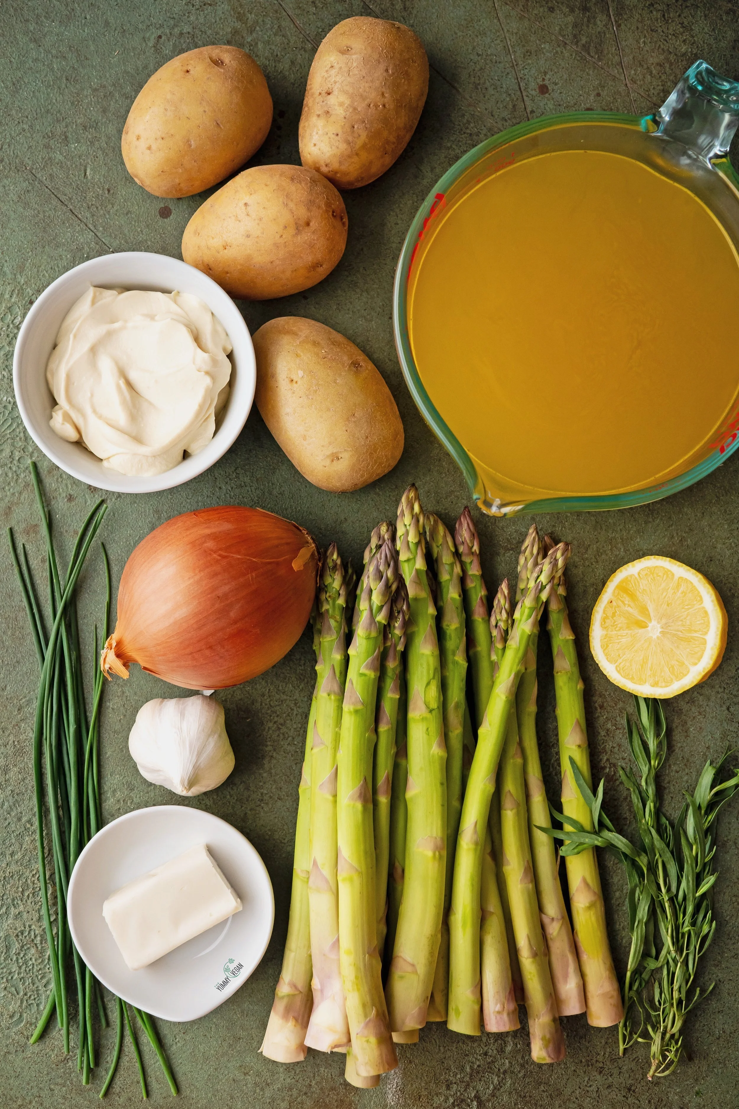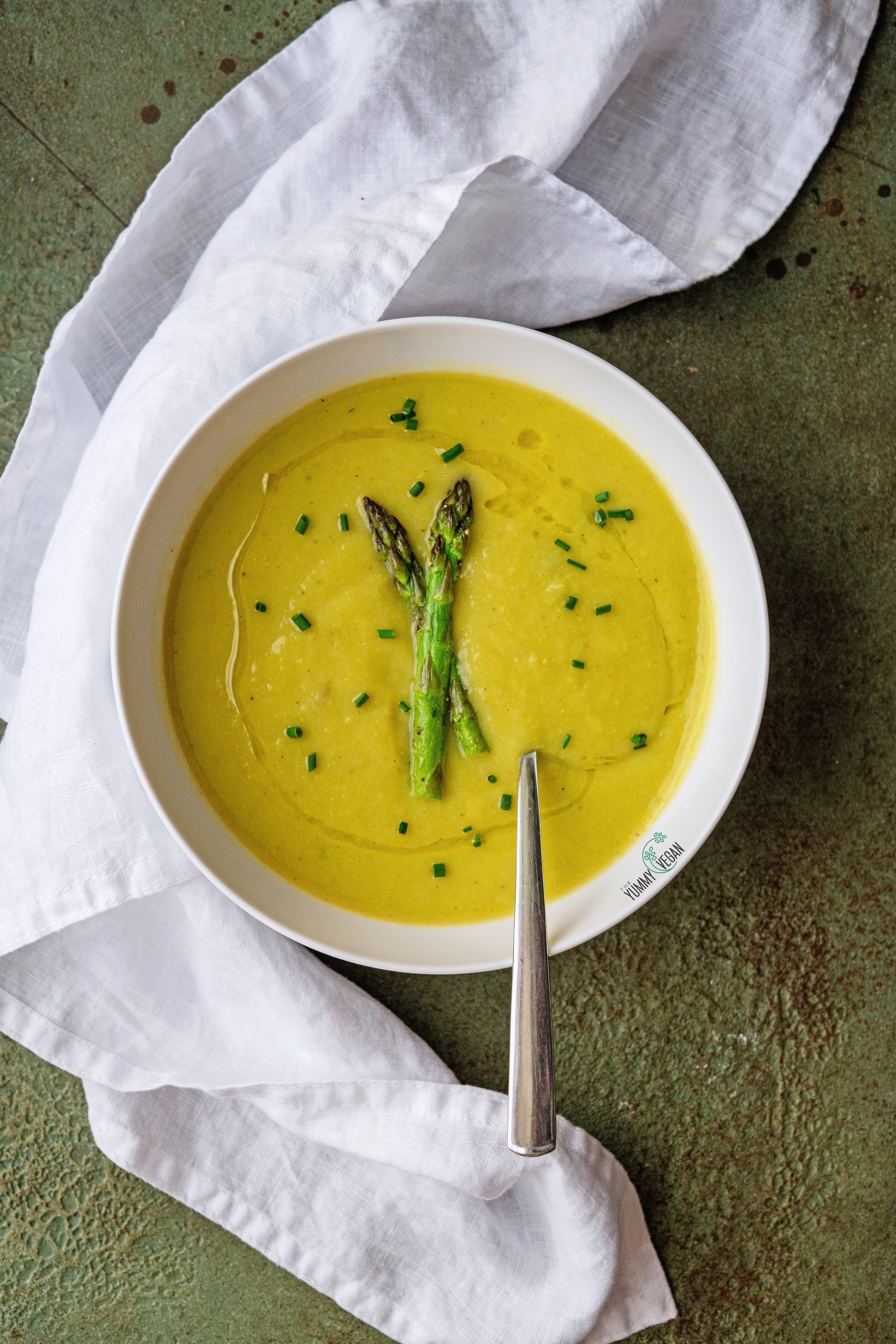 Celebrate the flavors of Spring with this incredible dairy free cream of asparagus soup. This deliciously creamy soup is made with simple ingredients and highlights the grassy, vegetal flavors of asparagus. The soup is bright tasting, easy to make and perfect served with either a dollop of plant based yogurt or a drizzle of good olive oil.