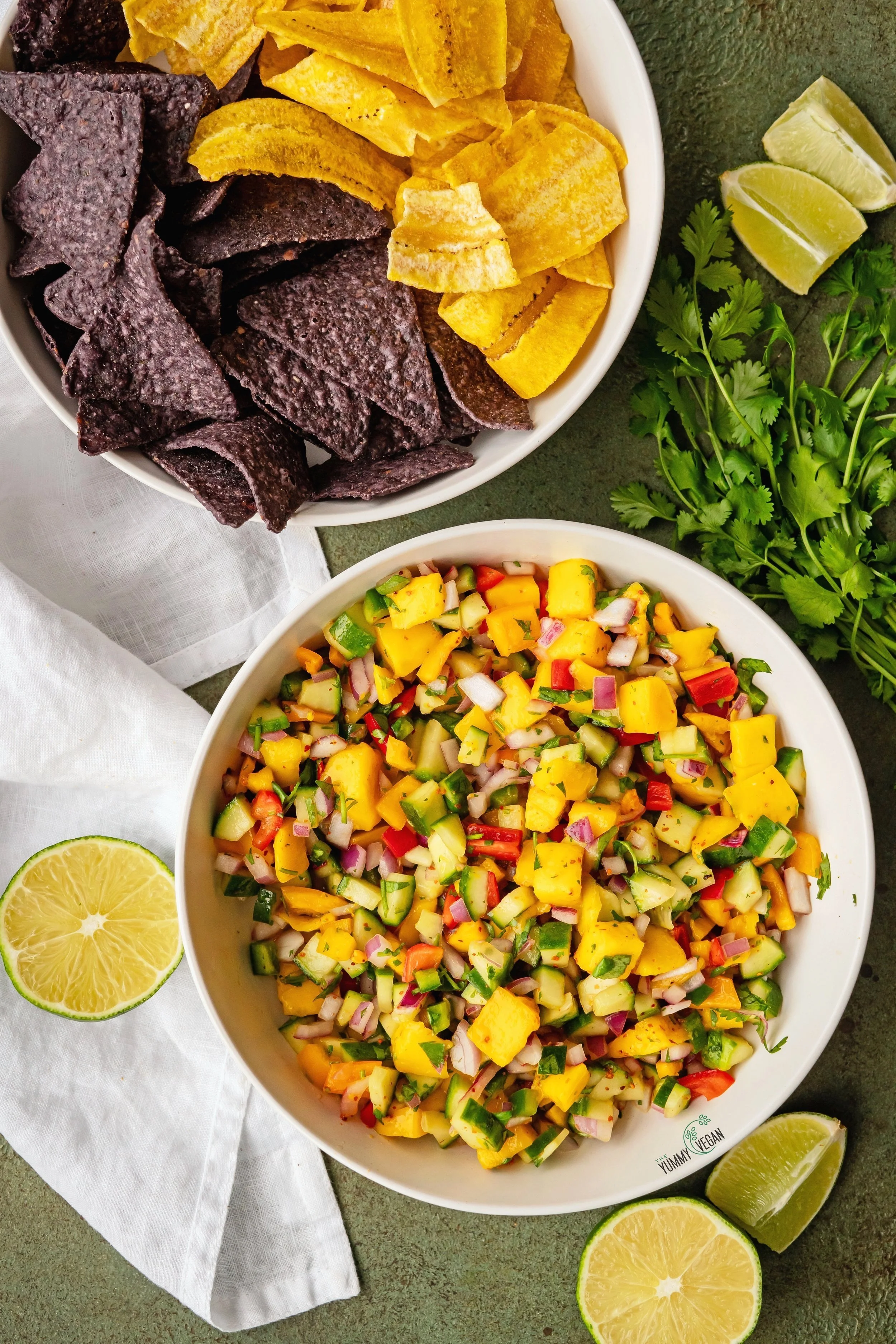 6.Serve with plantain or tortilla chips or enjoy it on everything you would use salsa on. Keep refrigerated in an airtight container for up to 5 days