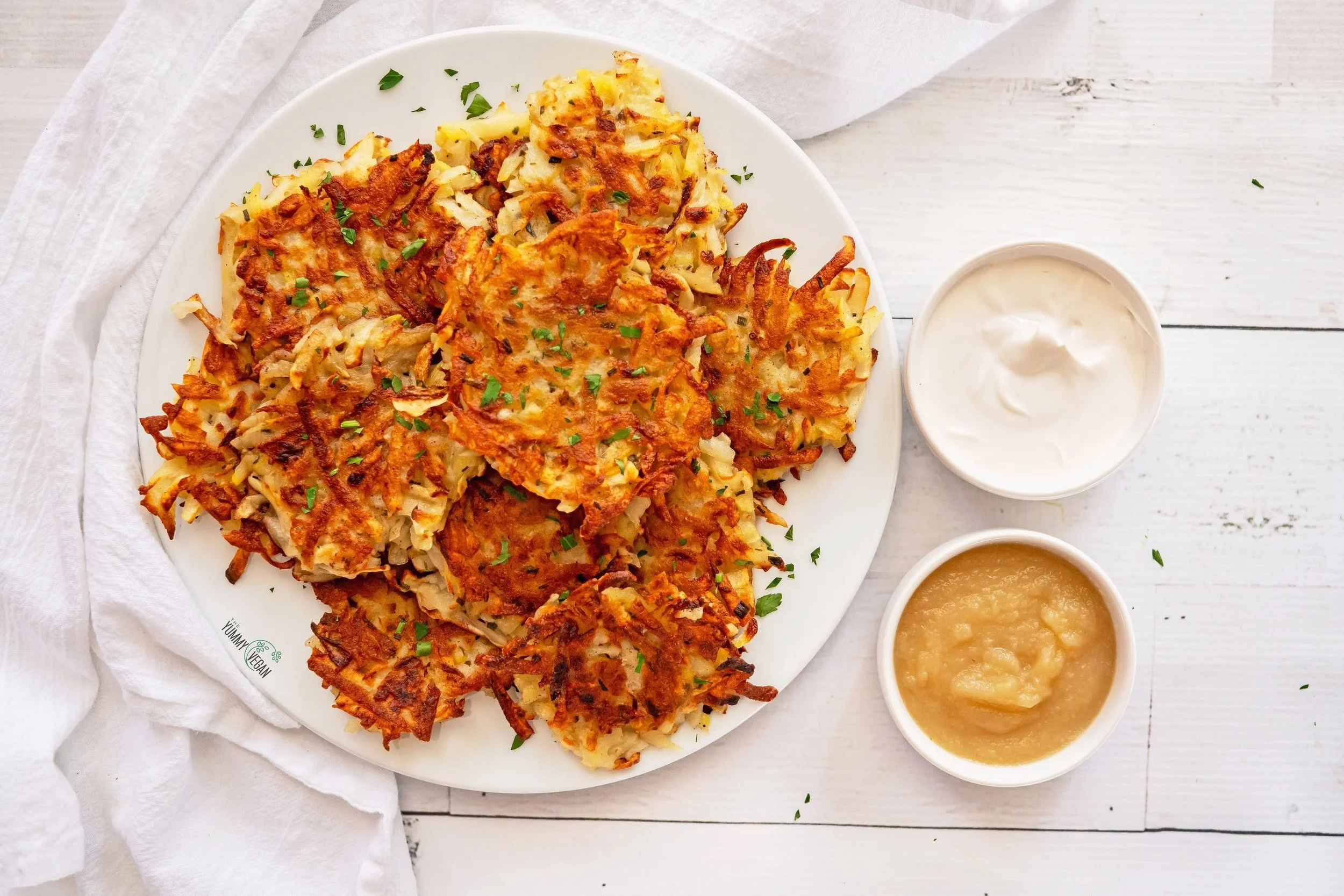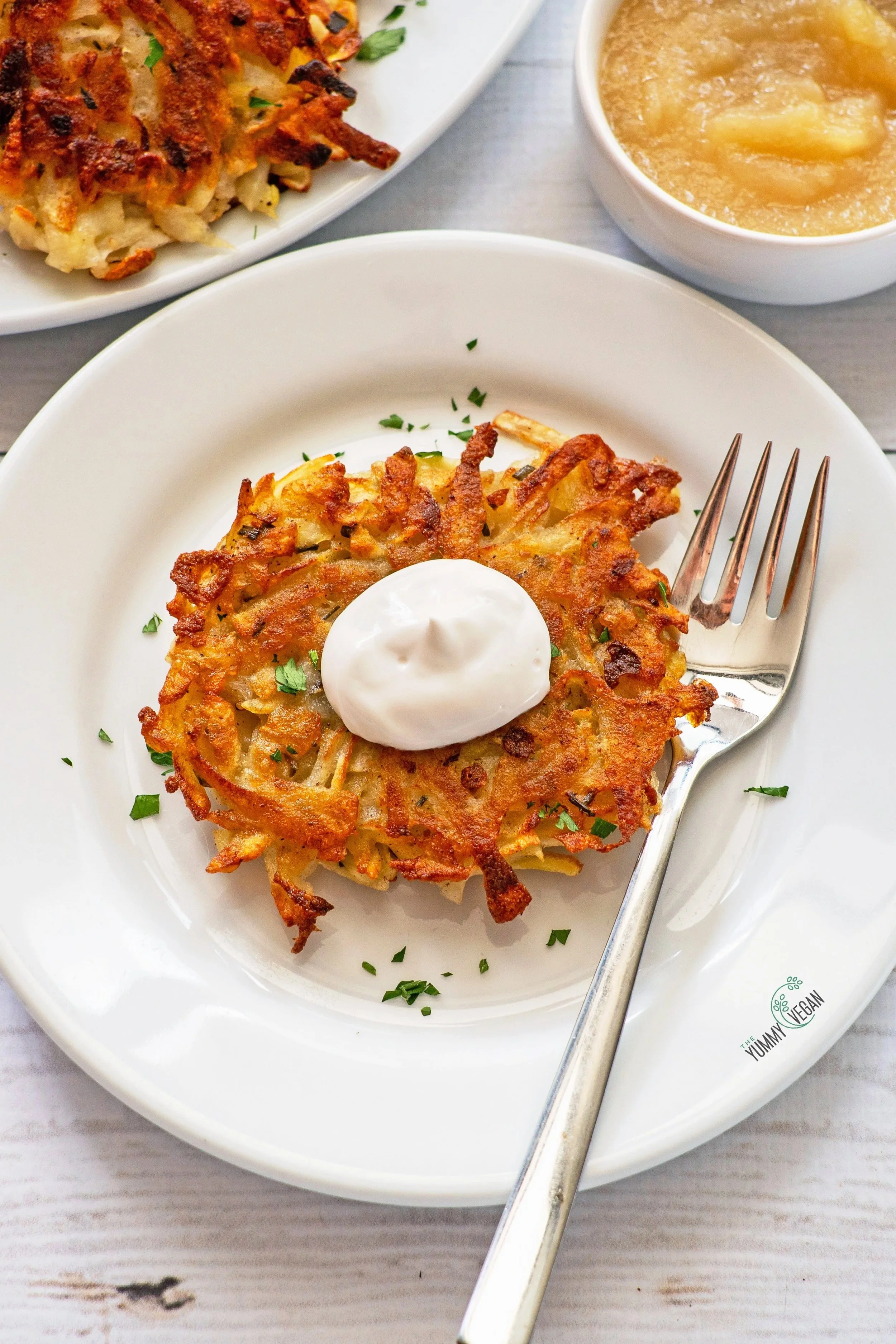 7. Serve warm and enjoy with vegan sour cream and apple sauce.