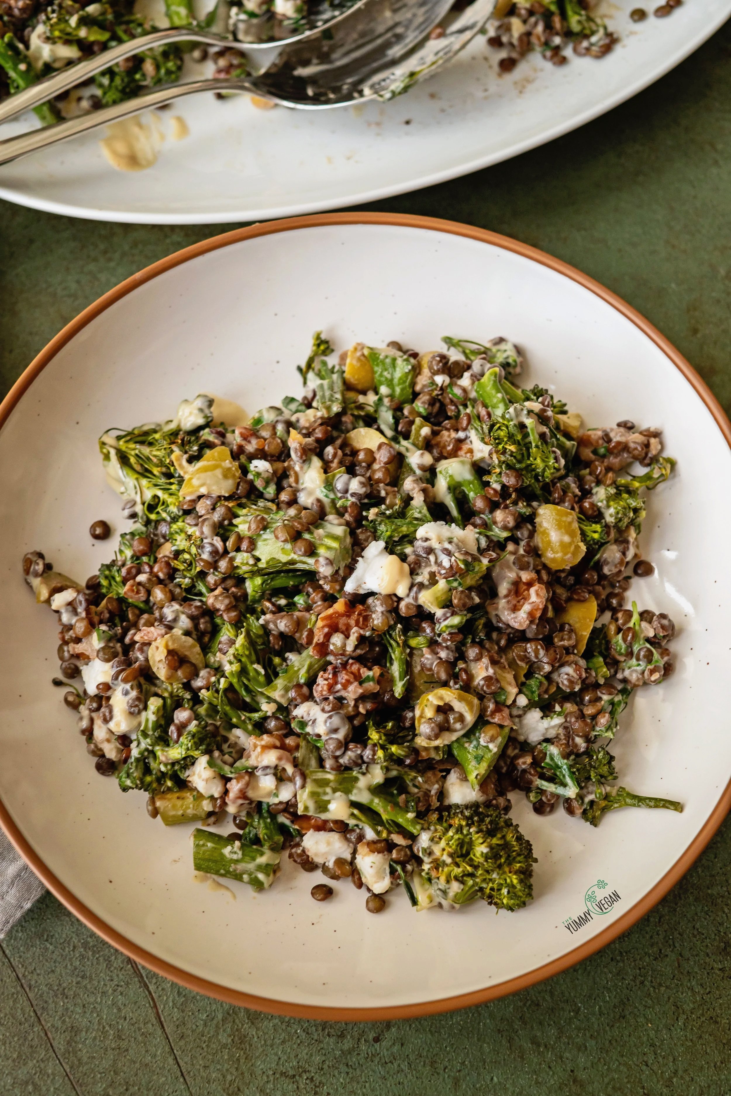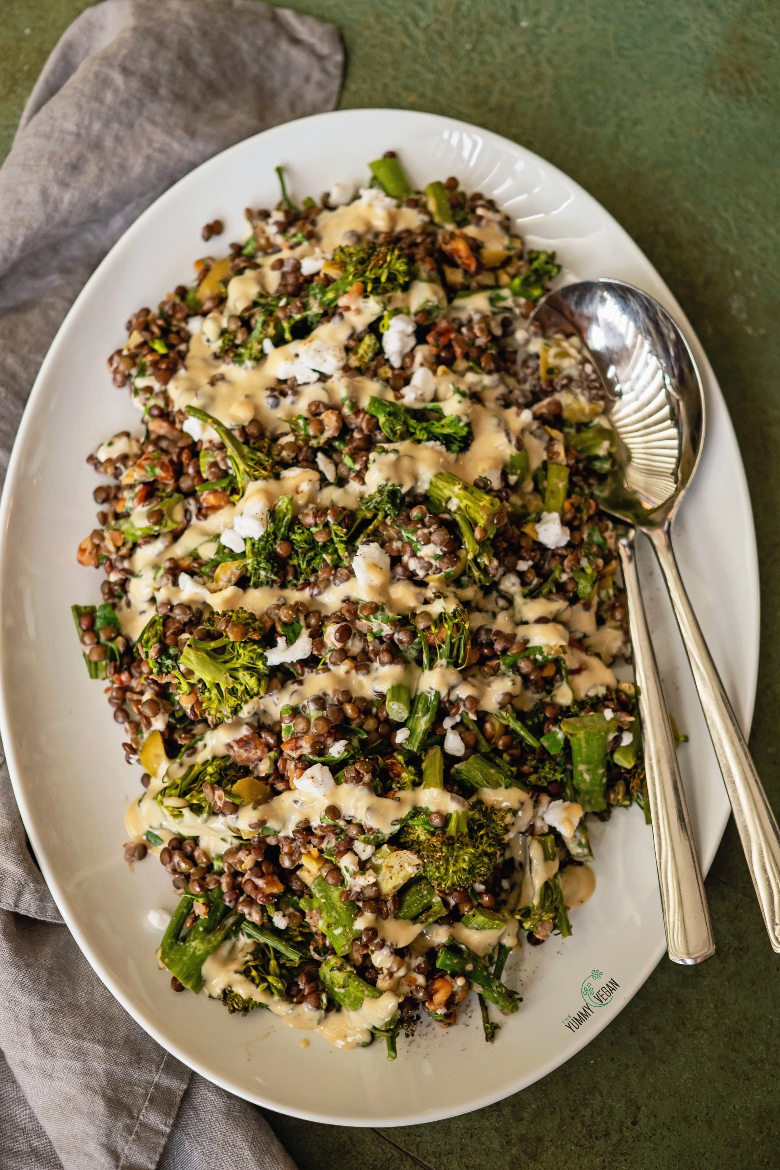 This hearty salad is packed with fiber and plant-based protein from lentils and broccolini, making it both nourishing and satisfying. Creamy vegan feta and briny olives add a pleasant tang, while toasted walnuts bring crunch and healthy fats. Fresh herbs and a rich, creamy tahini dressing tie everything together for a vibrant, well balanced flavor.